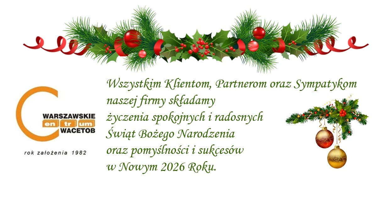 Wszystkim Klientom, Partnerom oraz Sympatykom naszej firmy składamy życzenia spokojnych i radosnych Świąt Bożego Narodzenia oraz pomyślności i sukcesów w Nowym 2026 Roku.